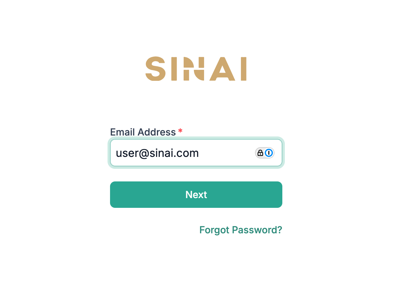 When users navigate to SINAI, they will be prompted to enter their email address:
